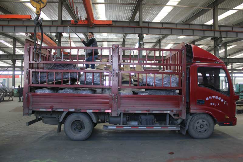 任丘客戶訂購的15套應用于石油鉆井泥漿處理系統里的泥漿攪拌器已打包,裝車,通過德州物流公司發往海南現場。
